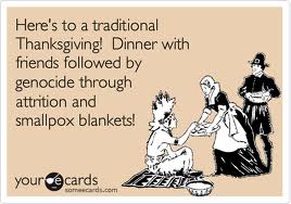 2. I thought this article was well-written and well worth posting each Thanksgiving. The comments attached to the article, however, do it little justice. I would like to think most who read it achieve a more rational balance. Since, indeed, history is quite full of barbarism on the part of nearly all societies, is it not reasonable that we should both better acknowledge the atrocities in our past and learn how to celebrate our present and future? I abhor the history behind Thanksgiving, but I see nothing so terrible about celebrating the love of friends and family around the dinner table and over a good meal.