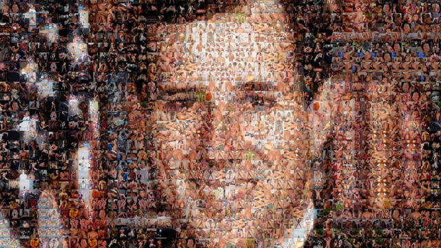 Yes, the homosexuals at the embarrassingly-titled blog Unicorn Booty are showcasing this modern work of art that uses stills from gay porn movies to make an effigy of Santorum that will make him so angry he might spit the frothy mixture of lube and fecal matter that is sometimes the byproduct of anal sex. Actually, it probably won’t do that, but it’s fun to see a man who hates gay people and porn (and just about everything else that is fun and decent in modern American society) with his nose made out of an anal sex scene. Yes, fun indeed. Here’s the full version if you want to see all the balls up close.