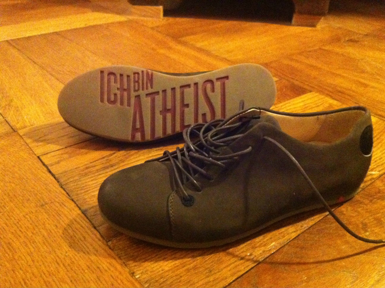 Now, I realise that some of you haven’t the foggiest what an Atheist shoe is. And, admittedly, an atheist shoes sounds like a peculiar idea. But we think a shoe is a lovely, understated way for atheists to out themselves and to be less shy about their godlessness. And we also think our Bauhaus-inspired, 1930s-infatuated shoes will be a welcome antidote to the samey junk pumped out by the big sneaker corporations – not only do we feel our designs are prettier, but we know that the care, craftsmanship and quality of materials going into our shoes are superior to those invested by N**e, *onver*e and Ad***s.