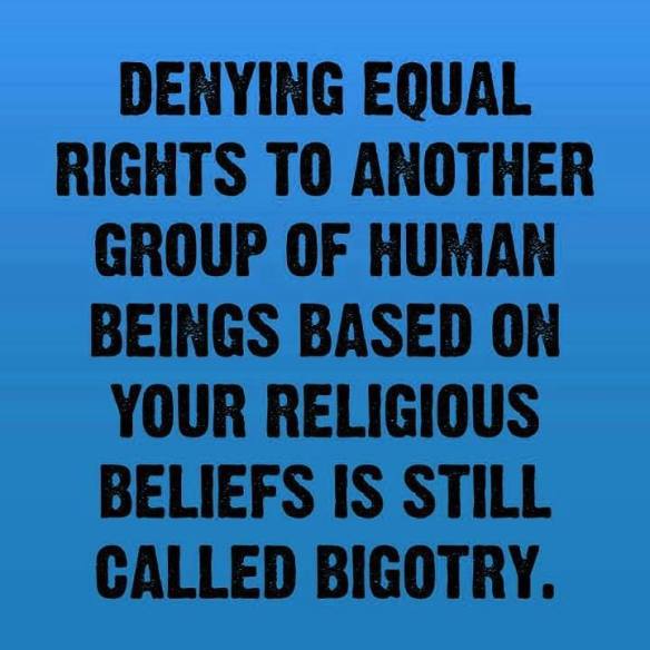 This entry was posted in Activism & Advocacy, Antitheism, Atheism, Bigotry, Christian Bigotry, Civil Liberties, Civil Rights, Compassion, Ethics, Homophobia, Intolerance, LGBT, Marriage Equality, Misogyny, Morality, Racial Profiling, Racism, Religion, Religious Hypocrisy, Religious Indoctrination, Religious Malevolence, Transgender Equality, White Privilege, White Supremacy, Women's Rights, Xenophobia by AlwaysQuestionAuthority. Bookmark the permalink.