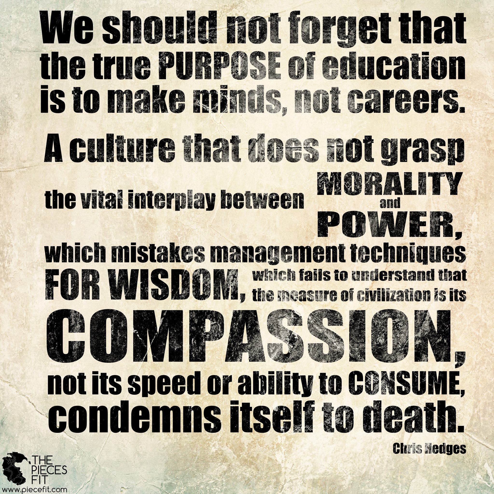 INTELLECTUALISM: “The True Purpose of Education” / Chris Hedges Posted on 09.12.2014 by AlwaysQuestionAuthority Reply h/t: More Trees Less Assholes