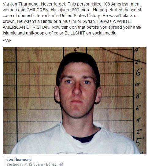 CHRISTIAN BIGOTRY AND HYPOCRISY: “Remember, Terrorist Timothy McVeigh was a White Amurikkkan Christian!” ☮