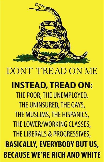 BIGOTED WHITE PRIVILEGE: “Tea Party Motto, Tread on Others” Posted on 11.18.2013 by AlwaysQuestionAuthority 1 h/t: Americans Against The Republican Party