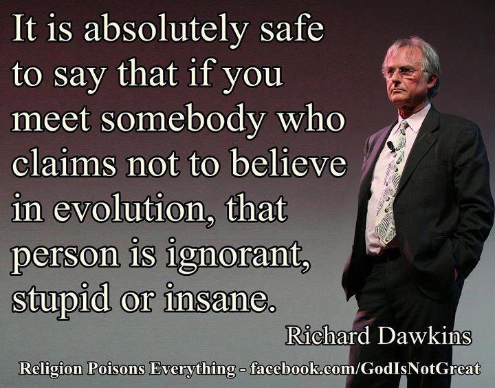 . . . “It is clear that some faith schools are ignoring the regulations and are continuing to teach myth as though it were science,” Dawkins said. “Evolution is fact, supported by evidence from a host of scientific disciplines, and we do a great disservice to our young people if we fail to teach it properly. “