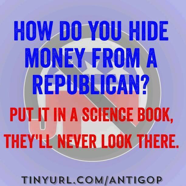 ANTI-SCIENCE: “How do You Hide Money from a Republican?” Posted on 09.22.2014 by AlwaysQuestionAuthority Reply h/t: Americans Against The Republican Party