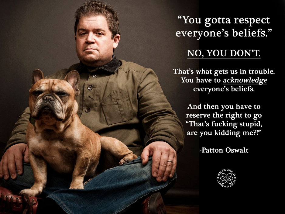 CENSORSHIP: “On Respect of Everyone’s Beliefs” / Patton Oswalt ☮ Posted on 01.22.2015 by AlwaysQuestionAuthority Reply h/t: Free-Thinking Society of Asheville