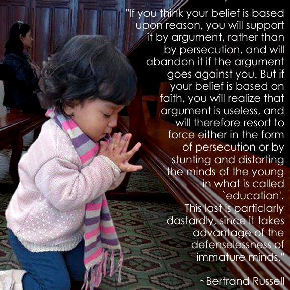 CHRISTIAN CHILD ABUSE (Mental Indoctrination): “On the Defenselessness of Immature Minds” / Bertrand Russell ☮