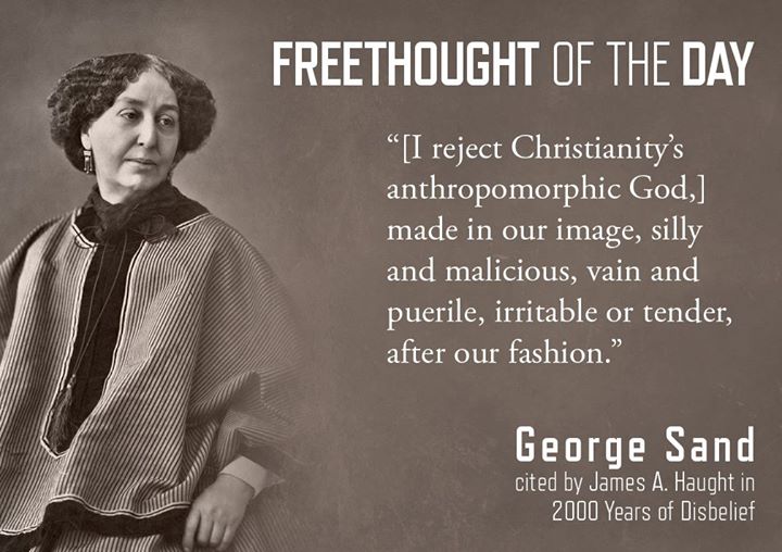 FREETHOUGHT OF THE DAY: “I Reject Christianity’s Anthropomorphic God” / George Sand ☮ Posted on 07.03.2015 by AlwaysQuestionAuthority 1 h/t: Freedom From Religion Foundation