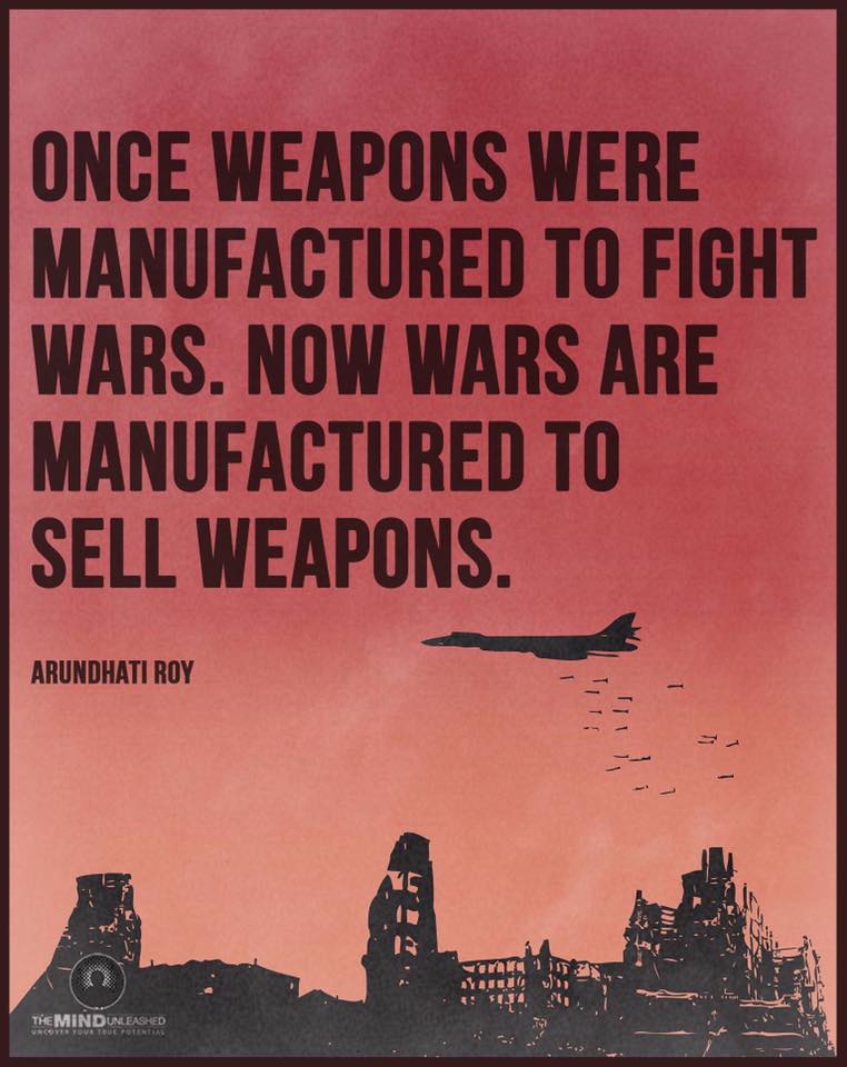 MILITARY-INDUSTRIAL COMPLEX: “The Manufacture of War for the Sale of Weapons” / Arundhati Roy ☮ Posted on 11.27.2015 by AlwaysQuestionAuthority 1